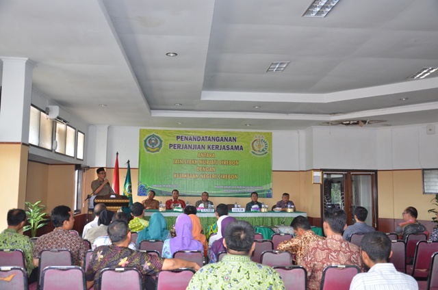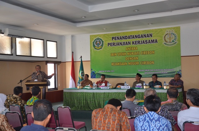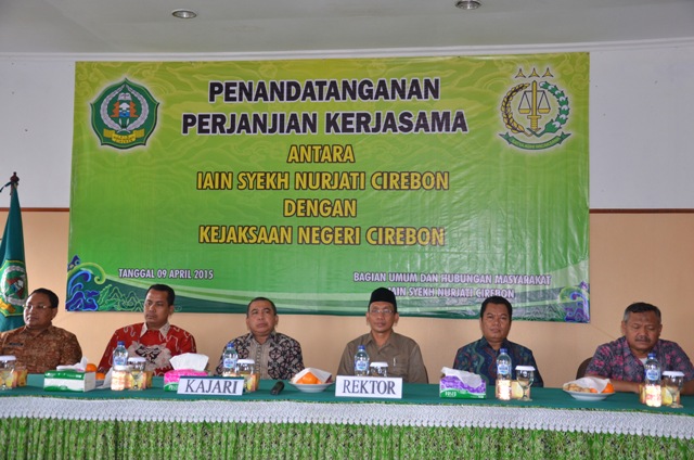 Dalam rangka peningkatan pemahaman tentang Hukum Pidana, Perdata dan Hukum Tata Usaha Negara (TUN) dalam pengelolaan adminstrasi lembaga yang sesuai dengan norma hukum, maka IAIN perlu mengadakan Seminar Hukum. Tentunya dalam hal ini tidaklah salah kalau IAIN Syekh Nurjati Cirebon menggandeng Kejaksaan Negeri Kota Cirebon sebagai mitra kerja. Kamis, 9 April 2015 IAIN Syekh Nurjati Cirebon menghelat kegiatan Penandatanganan Nota Kesepahaman (MoU) dengan Kejkasaan Negeri Kota Cirebon yang bertempat di gedung rektorat lt.3.