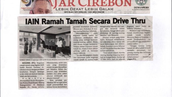 IAIN Ramah Tamah Secara Drive Thru (Fajar Cirebon/17 Mei 2021) 12 Oktober 2021 arifin Kliping Digital 0 IAIN Ramah Tamah Secara Drive Thru