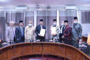 Dr. H. Sumanta, M.Ag Rektor Institut Agama Islam Negeri (IAIN) Syekh Nurjati Cirebon didampingi unsur pimpinan menerima tamu dari Universitas Darussalam (UNIDA) Gontor dengan maksud menjajaki kerja sama kedua belah pihak. Penandatanganan kerja sama tersebut dilakukan di ruang rapat senat, lantai 2 gedung rektorat IAIN Syekh Nurjati Cirebon, dari pihak tamu yaitu Rektor UNIDA Gontor, Prof. Dr. K.H. Hamid Fahmy Zarkasyi, M.A.Ed., M.Phil, didampingi Prof. Hamid datang langsung ke IAIN Syekh Nurjati Cirebon untuk melakukan penandatanganan kerja sama, didampingi Dekan Kuliyyatul Banat juga Ketua Ikatan Keluarga UNIDA Gontor, Dr. Nur Hadi Ihsan, MIRKH bersama 2 orang staf. Kamis (8/4/2021). Rektor IAIN Syekh Nurjati Cirebon, Dr. H. Sumanta, M.Ag menjelaskan, kerja sama tersebut terkait yang menjadi keunggulan masing-masing kampus. “Kemudian juga kerja sama di prodi (program studi), karena prodi di sana (UNIDA Gontor) perlu asupan dari sini (IAIN Cirebon), begitu juga kami perlu asupan dari sana.” Beliau memaparkan, UNIDA Gontor merupakan kampus yang di bawah naungan Kementerian Pendidikan dan Kebudayaan (Kemendikbud), dimana kampus tersebut telah banyak membuka prodi-prodi umum. “Kita juga akan bertransformasi menjadi UIN (Universitas Islam Negeri) yang akan membuka prodi-prodi umum juga. Itu akan dikerjasamakan untuk saling menguatkan.” Beliau meambahkan, penguatan prodi umum, penguatan bahasa, penguatan mutu akademik, dan penguatan pascasarjana. Karena di UNIDA Gontor juga sudah dibuka prodi-prodi hingga S3, dan kami juga ada. Kami juga punya profesor-profesor di bidang ilmu keagamaan, sehingga ini bisa saling menguatkan. Beliau akan merinci kerja sama tersebut ke prodi-prodi, fakultas, mahad, maupun pascasarjana untuk dapat diimplementasikan. “Kita akan membreakdown ke tataran yang lebih praktis, seperti prodi, fakuktas, mahad, pascasarjana. Karena kerja sama di tingkat institut ini kan sebagai payung.”