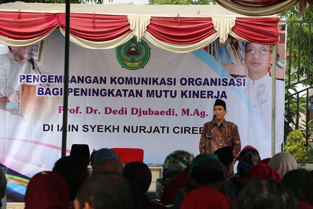 Ratusan tenaga pendidik dan kependidikan IAIN Syekh Nurjati Cirebon hadiri seminar dengan tema “Pengembangan Komunikasi Organisasi bagi peningkatan mutu kinerja” di sampiakan oleh pemateri Prof. Dr. Dedi Djubaedi, MA yang diharapkan mampu membuat tenaga pendidik lebih profesional, terutama, bisa mencegah masuknya paham radikal.