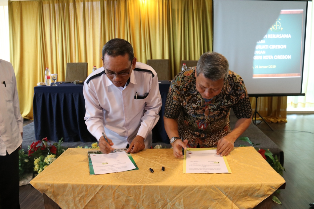 Institut Agama Islam Negeri (IAIN) Syekh Nurjati Cirebon menjalin kerja sama hukum perdata dan tata usaha negara dengan Kejaksaan Negeri Kota Cirebon. Penandatanganan kerja sama (MoU) antara IAIN Syekh Nurjati Cirebon sengan Kejaksaan Negeri Kota Cirebon dilakukan di Hotel Apita Cirebon. Kegiatan diikuti dihadiri 80 tamu undangan yang terdiri dari kejaksaan, Civitas Akademika IAIN Syekh Nurjati Cirebon dan pers. Kerja sama tersebut dilakukan untuk memperkuat bantuan hukum perdata dan tata usaha negara kepada IAIN Syekh Nurjati, yang menjadi lembaga kampus Negeri Islam terbesar di wilayah III Cirebon. Senin (21/01).