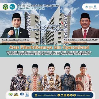 IAIN Cirebon – Institut Agama Islam Negeri (IAIN) Syekh Nurjati Cirebon merayakan pencapaian signifikan dengan mendapatkan izin penyelenggaraan Pendidikan Jarak Jauh (PJJ) untuk tiga program studi sekaligus. Keputusan Menteri Agama (KMA) Nomor 1158 dan 1159 tahun 2023 memberikan izin untuk PJJ Program Studi Pendidikan Bahasa Arab (PBA) dan Pendidikan Jarak Jauh (PJJ) Program Studi Pendidikan Guru Madrasah Ibtidaiyah (PGMI), sementara KMA Nomor 127 tahun 2024 memberikan izin untuk PJJ Program Studi Pendidikan Agama Islam (PAI) pada tingkat Magister (S2). Kamis, (15/02/2024).