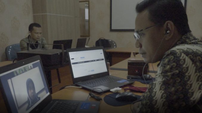 “Kita menggunakan aplikasi Zoom. Jadi sebelum masuk kita verifikasi data dulu oleh panitia. Seperti dilakukan pencocokan foto dan wajah peserta. Kalau dia menggunakan masker, maka maskernya harus dilepas dulu.