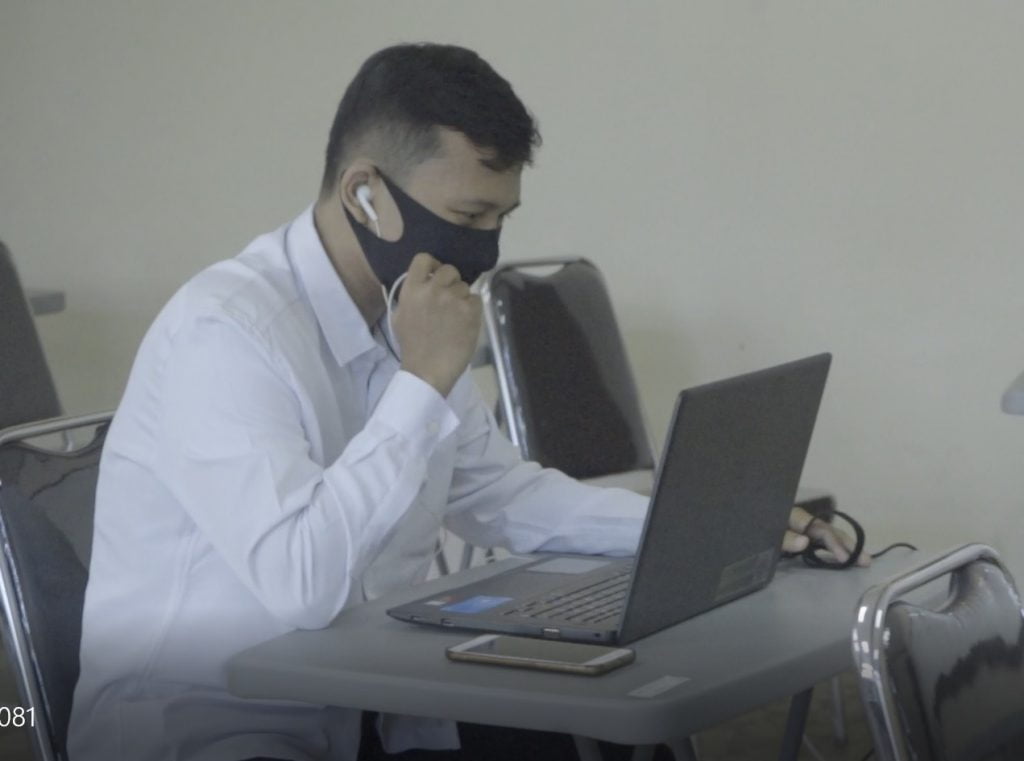 “Kita menggunakan aplikasi Zoom. Jadi sebelum masuk kita verifikasi data dulu oleh panitia. Seperti dilakukan pencocokan foto dan wajah peserta. Kalau dia menggunakan masker, maka maskernya harus dilepas dulu.