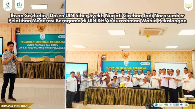 UIN Siber Cirebon (Pekalongan) – Dosen UIN Siber Syekh Nurjati Cirebon, Ihsan Sa’dudin, dipercaya menjadi narasumber dalam Pelatihan Moderasi Beragama yang diikuti pimpinan dan dosen UIN KH Abdurrahman Wahid Pekalongan, Selasa (5/8/2025).