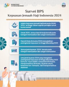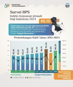 UIN Siber Cirebon – Jamaah haji Indonesia merasa sangat puas dengan layanan yang diberikan pemerintah selama musim haji 2024. Hal ini terungkap dalam survei yang dilakukan Badan Pusat Statistik (BPS) terkait Indeks Kepuasan Jemaah Haji Indonesia 2024, yang menunjukkan peningkatan signifikan dibandingkan tahun sebelumnya. Indeks kepuasan pada tahun ini mencapai angka 88,2, naik dari 85,83 pada 2023.