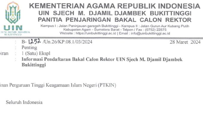 Informasi Pendaftaran Bakal Calon Rektor UIN Sjech M. Djamil Djambek Bukittinggi 3 April 2024 arifin Berita, Informasi 0 Untuk Informasi Selengkapnya Silahkan Download Link dibawah ini: Pengumuman-rektor (2)