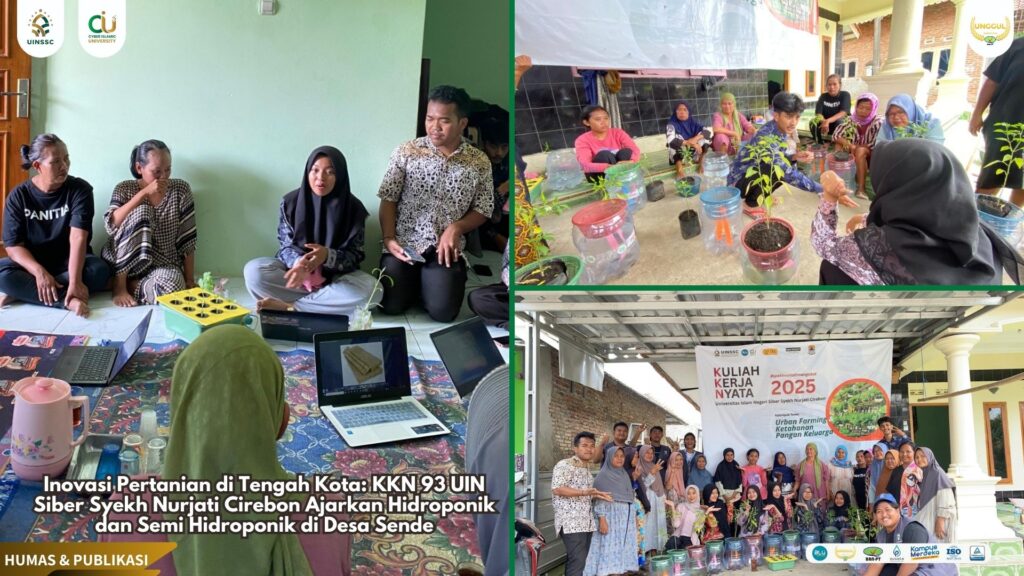 UIN Siber Cirebon (Sende) – Mahasiswa KKN Kelompok 93 UIN Siber Syekh Nurjati Cirebon menghadirkan inovasi pertanian modern kepada warga Desa Sende, Kecamatan Arjawinangun, melalui sosialisasi dan praktik sistem hidroponik dan semi hidroponik. Kegiatan yang berlangsung di halaman Posko KKN ini menyasar para ibu rumah tangga sebagai peserta utama.(13/08).
