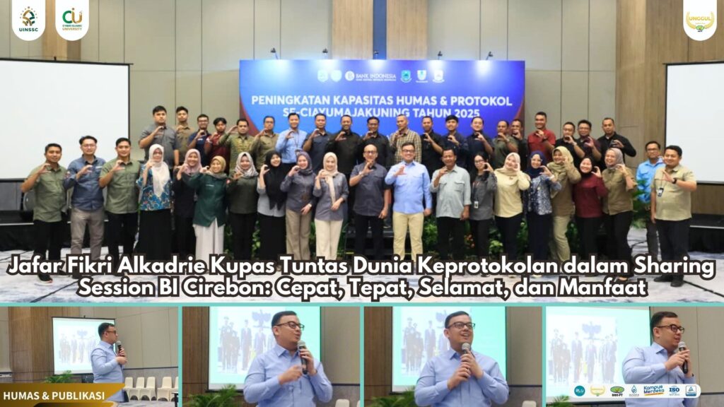 UIN Siber Cirebon (Kuningan) – Usai pembukaan resmi oleh Fickry Widya Nugraha, Deputi Kepala Perwakilan Bank Indonesia (BI) Cirebon, kegiatan Capacity Building Humas dan Protokol se-Ciayumajakuning berlanjut ke sesi penting bertema “Pengantar Keprotokolan”, Kamis (21/8), di Hotel Santika Premiere, Kuningan.