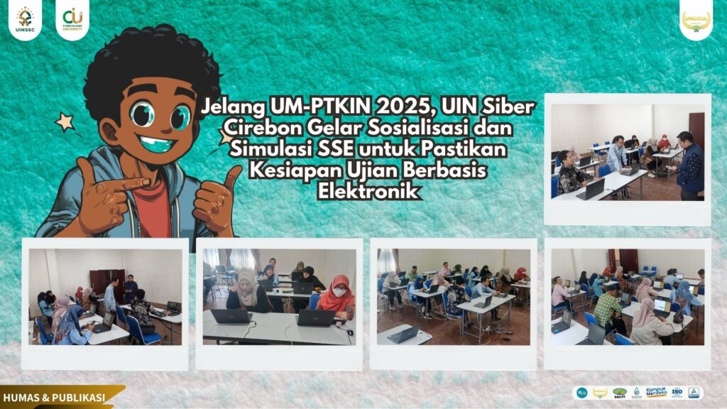 UIN Siber Cirebon — Menyambut pelaksanaan Ujian Masuk Perguruan Tinggi Keagamaan Islam Negeri (UM-PTKIN) 2025, Universitas Islam Negeri (UIN) Siber Syekh Nurjati Cirebon melalui Panitia Lokal (Panlok) menggelar kegiatan Sosialisasi Penanggung Jawab Ruang Sistem Seleksi Elektronik (SSE) sekaligus Simulasi dan Uji Coba pelaksanaan ujian di Titik Lokasi (Tilok) kampus, Kamis (5/6/2025).