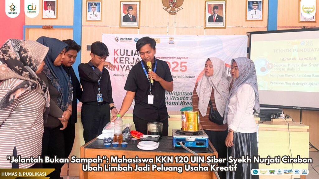 UIN Siber Cirebon (Seuseupan) – Mahasiswa Kuliah Kerja Nyata (KKN) Kelompok 120 dari UIN Siber Syekh Nurjati Cirebon menghadirkan inovasi kreatif dan ramah lingkungan lewat workshop bertajuk “Jelantah Bukan Sampah”, yang digelar pada Kamis, 14 Agustus 2025, pukul 14.00–15.30 WIB di Balai Desa Seuseupan, Kecamatan Karangwareng, Kabupaten Cirebon.