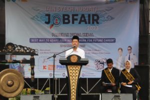 Sebelum membuka kegiatan job fair dan bimbingan karir secara resmi, Prof. Dr. H. Ilman Nafi’a, berharap, dengan adanya kegiatan ini para mahasiswa dapat meraih peluang emas untuk memulai karir mereka setelah menyelesaikan pendidikan tinggi di IAIN Syekh Nurjati Cirebon.