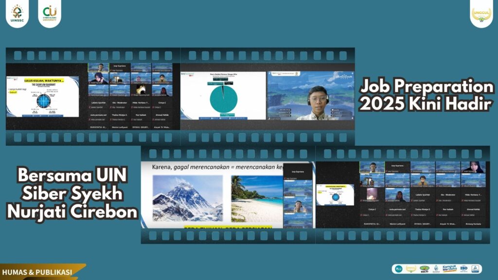UIN Siber Cirebon – Career Development Center (CDC) UIN Siber Syekh Nurjati Cirebon Bersama Brofesional Bimbingan persiapan karir mengadakan agenda perdana Job Preparation 2025. Yang dimana kegiatan ini dilaksanakan secara daring melalui platform Zoom yang disambut antusias oleh ratusan peserta dari alumni serta mahasiswa aktif terutama semester akhir. (08/07).