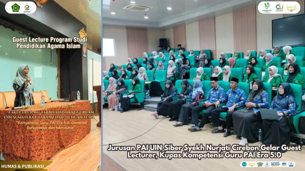 UIN Siber Cirebon – Jurusan Pendidikan Agama Islam (PAI) Fakultas Ilmu Tarbiyah dan Keguruan (FITK) Universitas Islam Negeri (UIN) Siber Syekh Nurjati Cirebon menegaskan komitmennya mencetak pendidik agama masa depan melalui Guest Lecturer (Kuliah Pakar) bertajuk “Kompetensi Guru PAI Era 5.0: Generasi Berkarakter dan Mendunia.” Kegiatan yang berlangsung di Auditorium Lantai 5 FITK ini diikuti puluhan mahasiswa semester 5 PAI dengan antusiasme tinggi.(01/10).