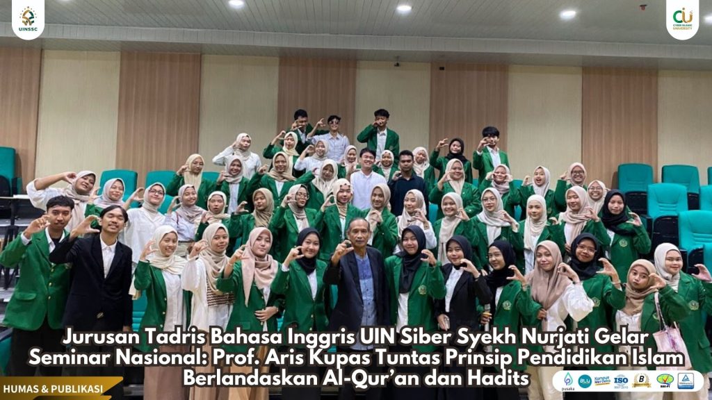 UIN Siber Cirebon – Jurusan Tadris Bahasa Inggris, Fakultas Ilmu Tarbiyah dan Keguruan (FITK), UIN Siber Syekh Nurjati Cirebon yang juga dikenal sebagai Cyber Islamic University (CIU), sukses menggelar Seminar Nasional bertema “Prinsip-Prinsip Pendidikan Islam Menurut Perspektif Al-Qur’an”. Acara ini berlangsung pada Jumat, 13 Desember 2024, di Auditorium FITK lantai 5 dan menghadirkan narasumber Prof. Dr. Aris, M.Pd., guru besar UIN Siber Syekh Nurjati Cirebon.