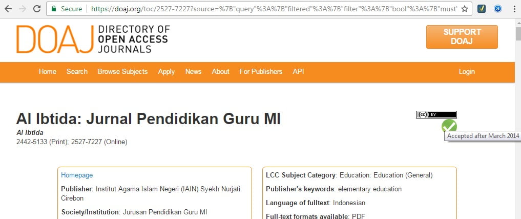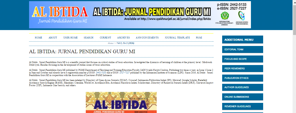 Terindeks DOAJ, Kampung Jurnal Apresiasi Progres Al Ibtida: Jurnal Pendidikan Guru MI