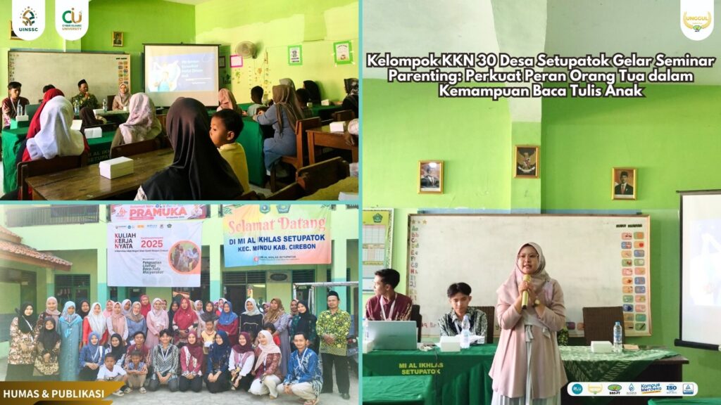 UIN Siber Cirebon (Setupatok) — Sebagai bagian dari kontribusi nyata terhadap penguatan literasi di masyarakat, Kelompok KKN 30 Universitas Islam Negeri (UIN) Siber Syekh Nurjati Cirebon menggelar Seminar Parenting bertajuk “Peran Orang Tua dalam Mendukung Kemampuan Baca Tulis Anak”, Sabtu (16/8/2025). Bertempat di MI Al Ikhlas Setupatok, kegiatan ini berlangsung pukul 13.00–15.00 WIB dan dihadiri oleh puluhan orang tua siswa dari lingkungan sekitar.