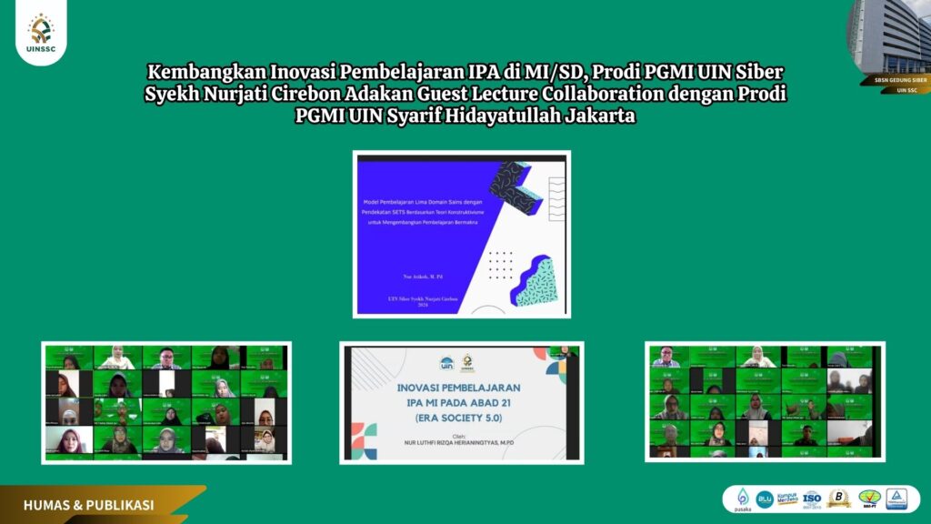 UIN SIber Cirebon – Jurusan Pendidikan Guru Madrasah Ibtidaiyah (PGMI), Fakultas Ilmu Tarbiyah dan Keguruan, UIN Siber Syekh Nurjati Cirebon, yang juga dikenal dengan Cyber Islamic University (CIU), selenggarakan “Guest Lecture Collaboration”. Kegiatan yang dilaksanakan secara online via zoom meeting ini merupakan tindak lanjut dari perjanjian kerjasama antara Jurusan PGMI UIN Siber Syekh Nurjati Cirebon dengan Prodi PGMI UIN Syarif Hidayatullah Jakarta di Bidang Pendidikan dan Pengajaran. Rabu, (11/09/2024).