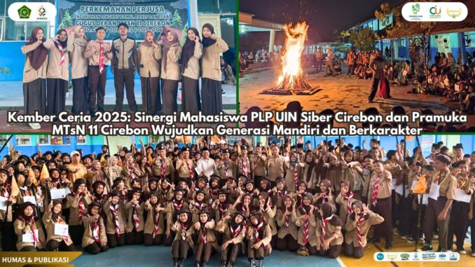 Tahun ini, Kember Ceria menghadirkan sinergi istimewa antara mahasiswa Program Latihan Profesi (PLP) UIN Siber Syekh Nurjati Cirebon dengan Pramuka MTsN 11 Cirebon. Kolaborasi ini memperkuat hubungan antara pendidikan tinggi dan madrasah dalam membentuk generasi muda yang berjiwa pemimpin, bertanggung jawab, dan memiliki semangat gotong royong.