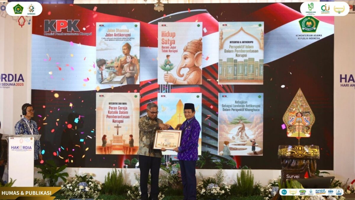 UIN Siber Cirebon (Kemenag) — Kementerian Agama mencatat dua capaian penting pada Peringatan Hari Antikorupsi Sedunia (HAKORDIA) 2025 yang digelar di Kantor Gubernur DIY, Selasa (9/12/2025). Selain meluncurkan Seri Buku Pendidikan Antikorupsi lintas agama hasil kolaborasi dengan KPK, Kemenag juga meraih dua penghargaan nasional atas kontribusinya dalam penguatan integritas di masyarakat.