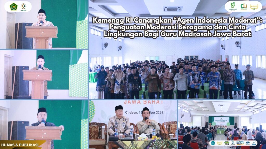 UIN Siber Cirebon – Dalam upaya memperkuat pemahaman dan praktik moderasi beragama di kalangan tenaga pendidik, Sekretariat Badan Moderasi Beragama dan Pengembangan Sumber Daya Manusia (BMBPSDM) Kementerian Agama Republik Indonesia menyelenggarakan kegiatan “Penguatan Moderasi Beragama dan Pencanangan Agen Indonesia Moderat”. Kegiatan ini digelar di Gedung PCNU Kabupaten Cirebon dengan mengusung tema “Penguatan Moderasi Beragama & Cinta Lingkungan (Ekoteologi) bagi Guru Madrasah Jawa Barat.”(15/10).
