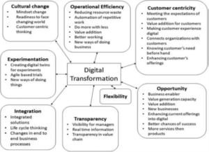 Transformasi digital (TD) bagi universitas atau perusahaan paling tidak mengandung makna: pertama, fokus pada pelanggan agar lebih dekat dengan memberikan pengalaman digital; kedua, TD sebagai pendorong bisnis dengan peluang besar bagi organisasi industri dalam hal kapasitas penciptaan nilai, penambahan nilai, penciptaan bisnis baru, peningkatan penawaran saat ini menjadi digital, peluang keberhasilan yang lebih baik, dan penyediaan lebih banyak layanan daripada produk; ketiga, TD dapat memfasilitasi efisiensi operasional yang membantu untuk mengurangi pemborosan sumber daya, digitalisasi dapat melakukan lebih banyak hal dengan lebih sedikit, serta sarana uji coba berbasis ketangkasan, eksperimen, cara baru dalam melakukan sesuatu, cara baru dalam memecahkan masalah, dan menghadirkan efisiensi operasional; keempat, TD sebagai perubahan budaya, bukan sekadar alat dan proses, tetapi juga perubahan pola pikir, bagaimana kita harus lebih cepat dan memiliki lebih banyak layanan daripada produk; kelima, TD membawa kemampuan eksperimentasi ke originasi petahana dalam mengembangkan kembaran digital suatu produk untuk tujuan ini, yaitu memastikan nilai produk dapat diberikan; keenam, TD sebagai sesuatu yang mengintegrasikan seluruh rantai nilai, solusi terintegrasi dan cara berpikir dalam cakupan seluruh siklus hidup; ketujuh, TD membawa transparansi yang memberikan visibilitas bagi para pimpinan/manajer untuk melihat secara langsung apa yang terjadi di organisasi, apa hambatan, dan dimana masalahnya, sehingga memberikan peluang besar untuk menghadirkan transparansi ke seluruh rantai nilai; dan kedelapan, TD sebagai fleksibilitas, bukan berarti standarisasi.