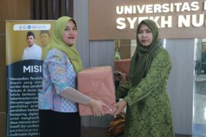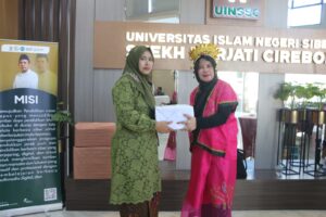 Ketua Dharma Wanita Persatuan (DWP) UIN Siber Syekh Nurjati Cirebon, Hj. Husnul Khotimah Aan Jaelani, S.Pd.I, berkesempatan menyerahkan secara langsung hadiah-hadiah kepada para pemenang cabang perlombaan yang diikuti oleh dosen, dan tendik.