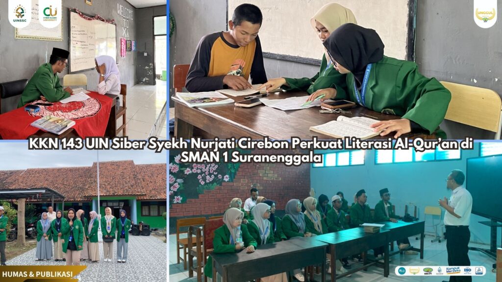 UIN Siber Cirebon (Suranenggala) — Di tengah tantangan era digital, mahasiswa Kuliah Kerja Nyata (KKN) Kelompok 143 UIN Siber Syekh Nurjati Cirebon menginisiasi program Penguatan Literasi Al-Qur’an di SMAN 1 Suranenggala. Kegiatan ini digelar empat kali, yaitu pada 30–31 Juli dan 4–6 Agustus 2025, bertempat di Mushola SMAN 1 Suranenggala .