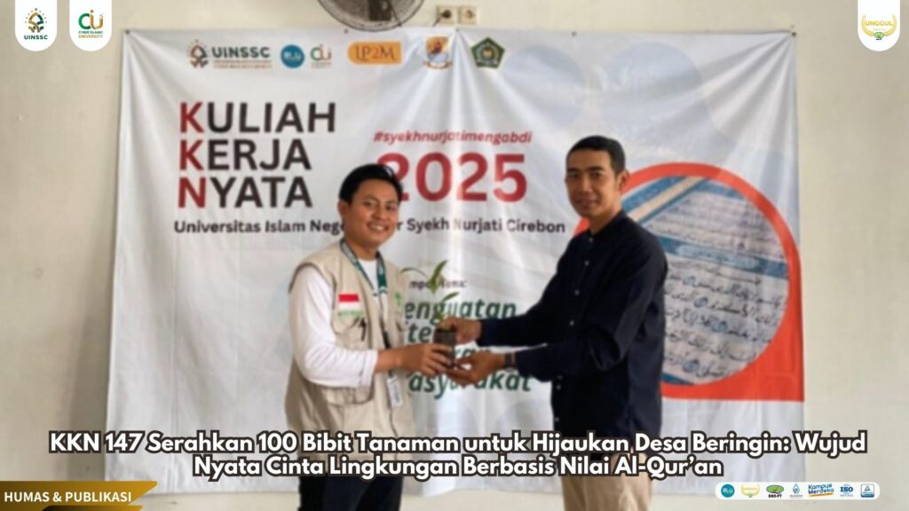 UIN Siber Cirebon (Beringin) — Dalam upaya mendukung pelestarian lingkungan dan memperkuat kesadaran ekologis masyarakat desa, Kelompok KKN 147 UIN Siber Syekh Nurjati Cirebon secara resmi menyerahkan 100 bibit tanaman kepada Pemerintah Desa Beringin, Kecamatan Pangenan, pada Sabtu (09/08). Kegiatan ini berlangsung di Balai Desa Beringin dan menjadi simbol kolaborasi antara mahasiswa, warga, dan pemerintah desa dalam membangun ruang hijau yang lebih sehat dan produktif.
