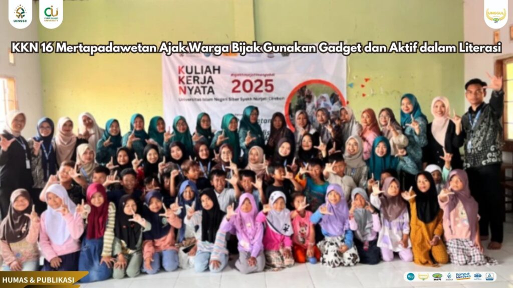 UIN Siber Cirebon (Mertapadawetan) — Kelompok KKN 16 UIN Siber Syekh Nurjati Cirebon menggelar Penyuluhan Edukatif bertema “Bijak Gunakan Gadget, dan Aktif dalam Literasi” di MI Al-Hikam, Mertapadawetan, Minggu (10/8) pagi. Kegiatan yang berlangsung pukul 09.00–11.00 WIB ini dihadiri para orang tua bersama anak-anak mereka, dengan tujuan meningkatkan kesadaran akan pentingnya pengawasan penggunaan gadget serta mendorong minat baca di kalangan generasi muda.