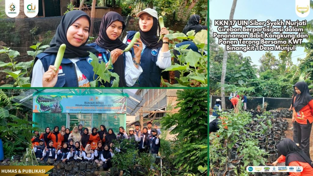 UIN Siber Cirebon (Munjul) — Suasana sore di Sekretariat Kelompok Wanita Tani (KWT) Binangkit 1 Desa Munjul tampak ramai dan penuh semangat. Mahasiswa Kuliah Kerja Nyata (KKN) Kelompok 17 UIN Siber Syekh Nurjati Cirebon turut ambil bagian dalam kegiatan rutin KWT, yakni penanaman bibit kangkung dan panen terong.(05/08).