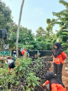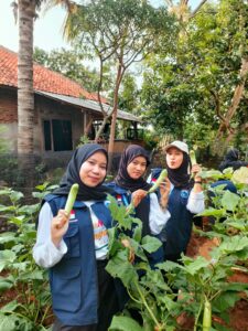 Selain menanam bibit kangkung, para mahasiswa KKN juga ikut membantu memanen terong hasil budidaya KWT. Hasil panen ini nantinya akan dimanfaatkan untuk kebutuhan konsumsi sekaligus dijual untuk menambah pendapatan kelompok.