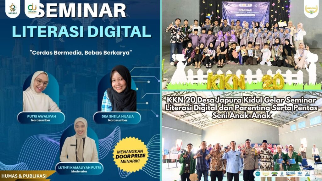UIN Siber Cirebon (Japura Kidul) — Di tengah perkembangan teknologi yang semakin cepat, KKN Kelompok 20 UIN Siber Syekh Nurjati Cirebon menggelar sebuah kegiatan edukatif bertajuk “Seminar Literasi Digital dan Parenting” yang diikuti dengan Pentas Seni Anak-Anak, bertempat di Gor Manis 1, Desa Japura Kidul, mulai pukul 13.00 hingga 17.00 WIB.(14/08).