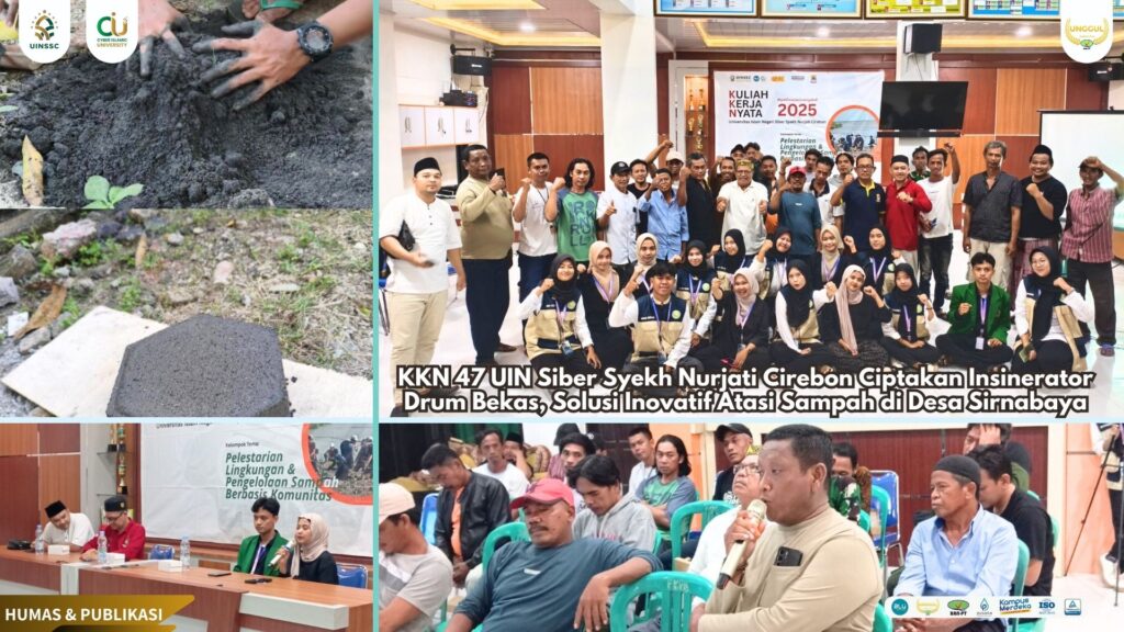UIN Siber Cirebon (Sirnabaya) — Mahasiswa Kelompok KKN 47 Universitas Islam Negeri (UIN) Siber Syekh Nurjati Cirebon kembali menunjukkan kontribusi nyata mereka di tengah masyarakat. Bertempat di Balai Desa Sirnabaya, mereka menggelar Lokakarya Pengelolaan Sampah Terpadu dengan mengusung inovasi andalan: Insinerator dari drum bekas sebagai solusi alternatif dan berkelanjutan untuk mengatasi persoalan sampah.(15/08).