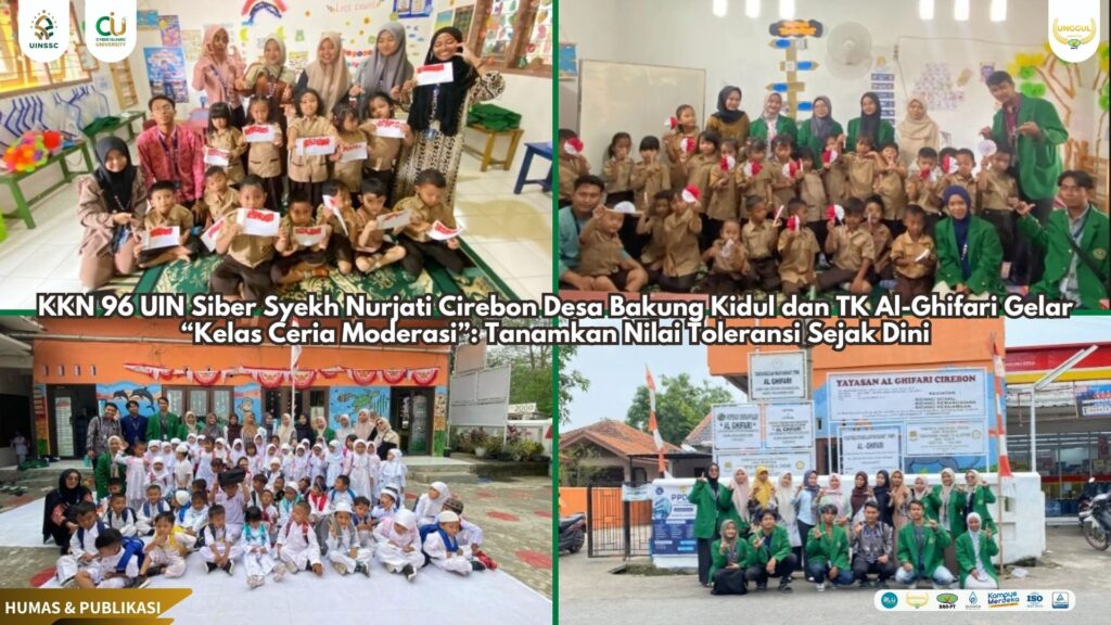 UIN Siber Cirebon (Bakung Kidul) – Dalam upaya membentuk generasi muda yang moderat, toleran, dan penuh kasih, mahasiswa KKN 96 UIN Siber Syekh Nurjati Cirebon Desa Bakung Kidul menggelar program edukatif bertajuk “Kelas Ceria Moderasi” di TK Al-Ghifari, Cirebon.