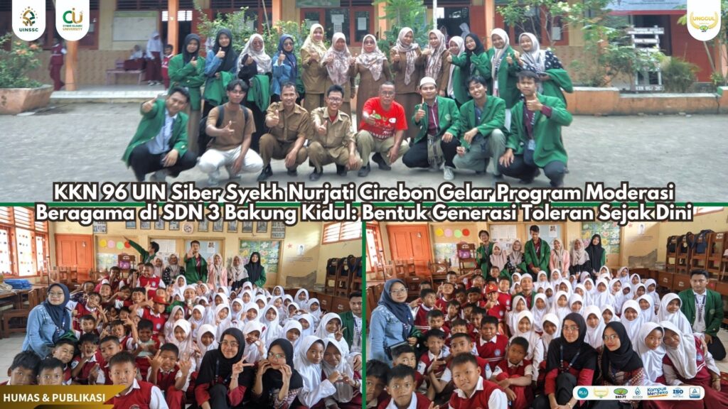 UIN Siber Cirebon (Bakung Kidul) — Dalam upaya menanamkan nilai toleransi dan kerukunan sejak dini, Kelompok KKN 96 UIN Siber Syekh Nurjati Cirebon melaksanakan kegiatan Belajar Moderasi Beragama di SDN 3 Bakung Kidul, Kecamatan Jamblang. Kegiatan ini berlangsung pada Rabu (6/8) pukul 08.00–10.00 WIB dan diikuti oleh puluhan siswa, guru, serta perwakilan orang tua.