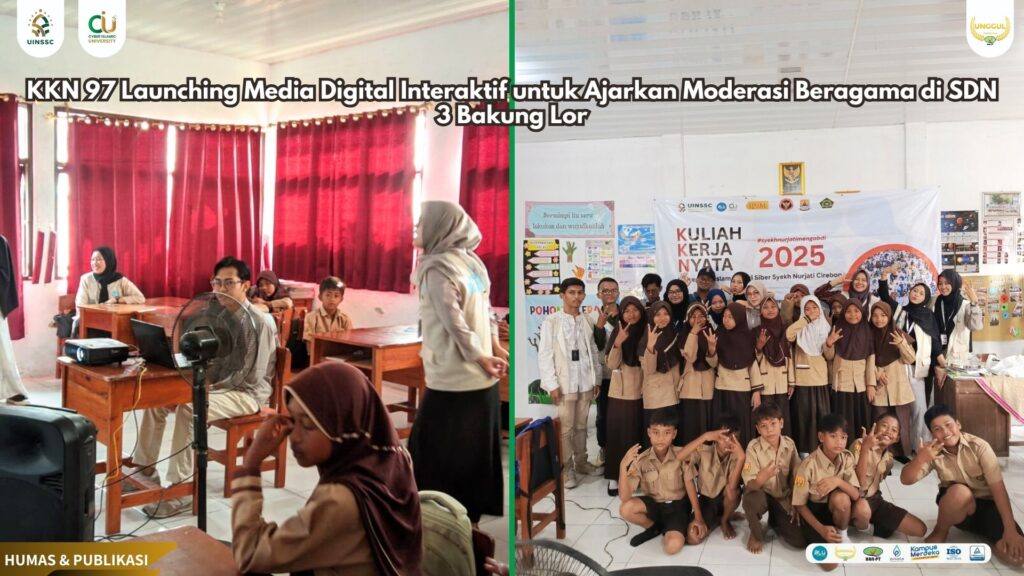 UIN Siber Cirebon (Bakung Lor) — Inovasi dalam dunia pendidikan kembali hadir dari pelosok desa. Kelompok KKN 97 UIN Siber Syekh Nurjati Cirebon sukses meluncurkan media pembelajaran digital interaktif bertema “Moderation Game for Elementary School” di SDN 3 Bakung Lor, Kecamatan Jamblang, Kabupaten Cirebon, Sabtu pagi (9/8). Acara ini sekaligus menjadi tonggak baru dalam penguatan pendidikan karakter berbasis moderasi beragama di tingkat sekolah dasar.(09/08).