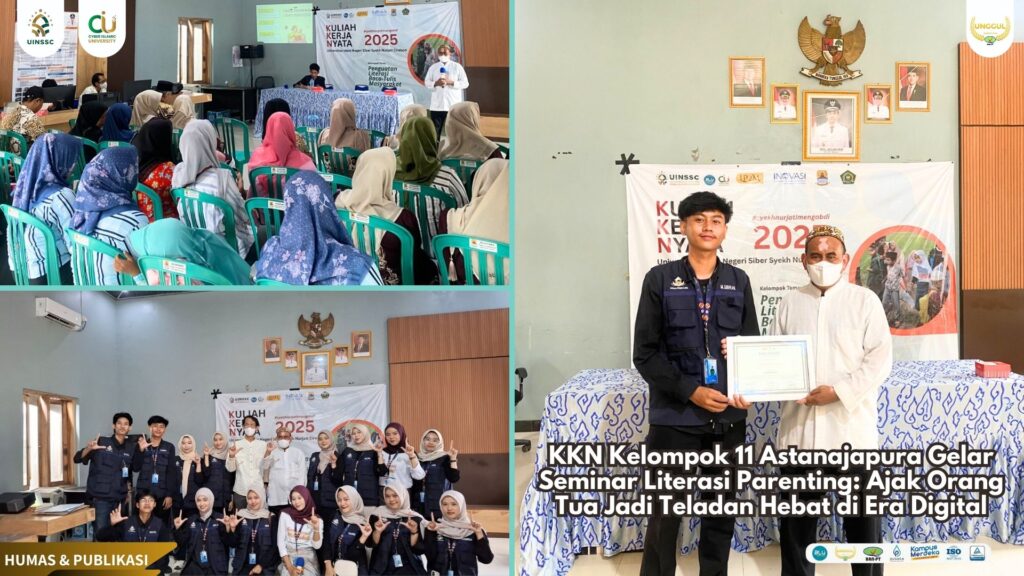 UIN Siber Cirebon (Astanjapura) – Kelompok KKN 11 Astanajapura sukses menyelenggarakan Seminar Literasi Parenting bertajuk “Parenting Literasi: Upgrade Peran Orang Tua di Era Digital” pada Kamis (7/8/2025) di Kantor Balai Desa Astanajapura. Acara berlangsung pukul 09.00–11.00 WIB dan mendapat sambutan hangat dari masyarakat.
