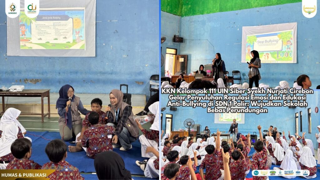 UIN Siber Cirebon (Palir) — Upaya menciptakan lingkungan belajar yang sehat, aman, dan ramah anak terus digencarkan. Kelompok KKN 111 UIN Siber Syekh Nurjati Cirebon (UIN SSC) mengadakan Penyuluhan Regulasi Emosi dan Edukasi Anti-Bullying di SDN 1 Palir selama dua hari, 30–31 Juli 2025. Kegiatan ini melibatkan seluruh siswa dari kelas 1 hingga kelas 6.