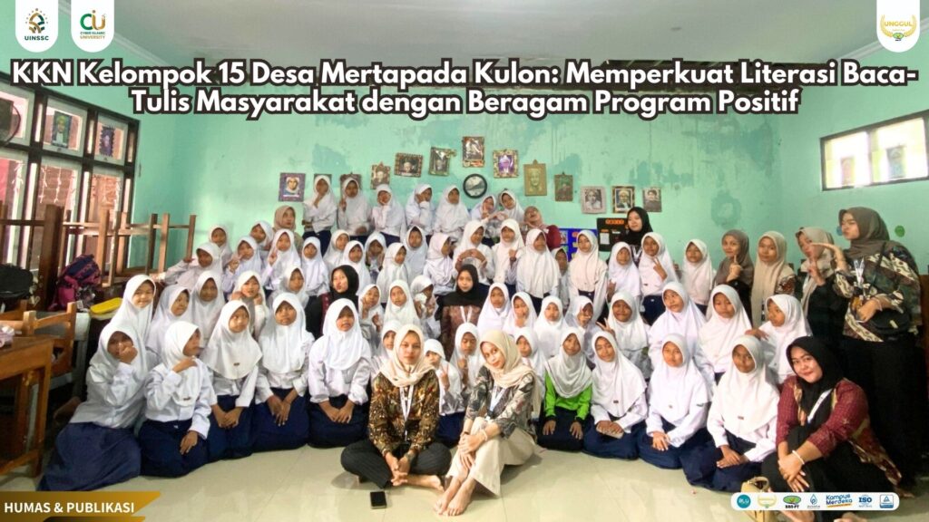 UIN Siber Cirebon (Mertapada Kulon) – Kegiatan Kuliah Kerja Nyata (KKN) Kelompok 15 yang berlangsung di Desa Mertapada Kulon sejak 12 Juli hingga 20 Agustus 2025 sukses menghadirkan beragam inovasi dalam penguatan literasi baca-tulis masyarakat. Mengusung tema “Penguatan Literasi Baca-Tulis Masyarakat”, mahasiswa UIN Siber Syekh Nurjati Cirebon ini melaksanakan delapan program kerja yang terintegrasi dan menyasar berbagai lapisan masyarakat, mulai dari anak-anak hingga orang tua.
