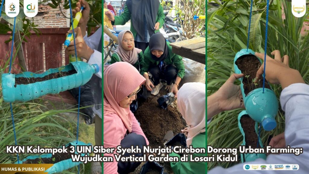 UIN Siber Cirebon (Losari Kidul) — Mahasiswa Kuliah Kerja Nyata (KKN) Kelompok 3 UIN Siber Syekh Nurjati Cirebon menghadirkan inovasi hijau melalui Workshop Urban Farming Vertikal yang digelar di Balai Desa Losari Kidul pada Minggu (03/08/2025) pukul 10.00–12.00 WIB. Program ini mengusung konsep Sayuran Vertical Garden sebagai solusi pemanfaatan lahan sempit di kawasan padat penduduk.