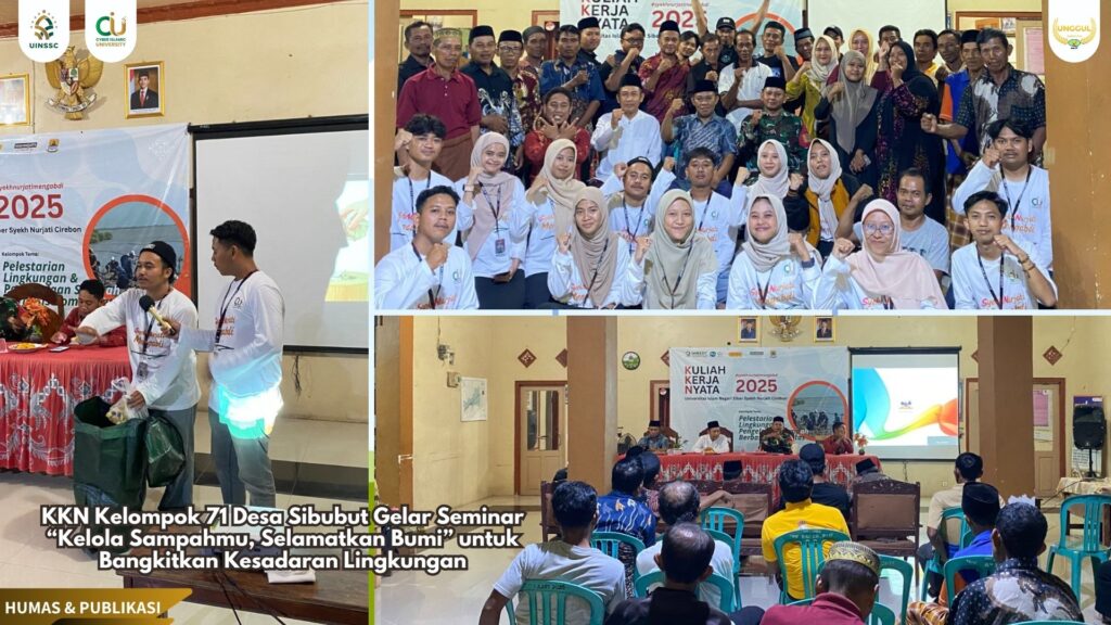 UIN Siber Cirebon (Gegesik) — Kesadaran terhadap pengelolaan sampah semakin menjadi kebutuhan mendesak, terlebih di tengah meningkatnya volume limbah rumah tangga. Menjawab tantangan tersebut, Mahasiswa Kuliah Kerja Nyata (KKN) Kelompok 71 UIN Siber Syekh Nurjati Cirebon menggelar Seminar Edukasi Pengelolaan Sampah bertema “Kelola Sampahmu, Selamatkan Bumi”, bertempat di Balai Desa Sibubut, Kecamatan Gegesik, Kabupaten Cirebon, Kamis malam (31/7) pukul 20.00–21.30 WIB.