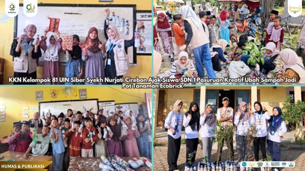 UIN Siber Cirebon (Pasuruan) – Kepedulian terhadap lingkungan dan kreativitas menjadi semangat utama KKN Kelompok 81 Universitas Islam Negeri Siber Syekh Nurjati Cirebon (UINSSC) dalam menggelar kegiatan edukatif di SDN 1 Pasuruan. Lewat program bertajuk “Ecobrick: Dari Sampah Jadi Pot Tanaman”, para mahasiswa berhasil menginspirasi siswa-siswi untuk mengelola sampah plastik menjadi pot tanaman yang ramah lingkungan dan bernilai guna.(25/08).