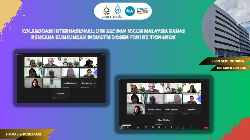 UIN Siber Cirebon — Universitas Islam Negeri (UIN) Siber Syekh Nurjati Cirebon (UIN SSC) dan International Centre for Communication and Culture Malaysia (ICCCM) mengadakan rapat virtual kemarin untuk membahas rencana kunjungan tim dosen peneliti dari Fakultas Dakwah dan Komunikasi Islam (FDKI) UIN SSC ke Tiongkok pada bulan September 2024. Kunjungan ini akan mencakup symposium internasional bersama dan kunjungan industri yang difasilitasi oleh International Office and Partnership UIN SSC.