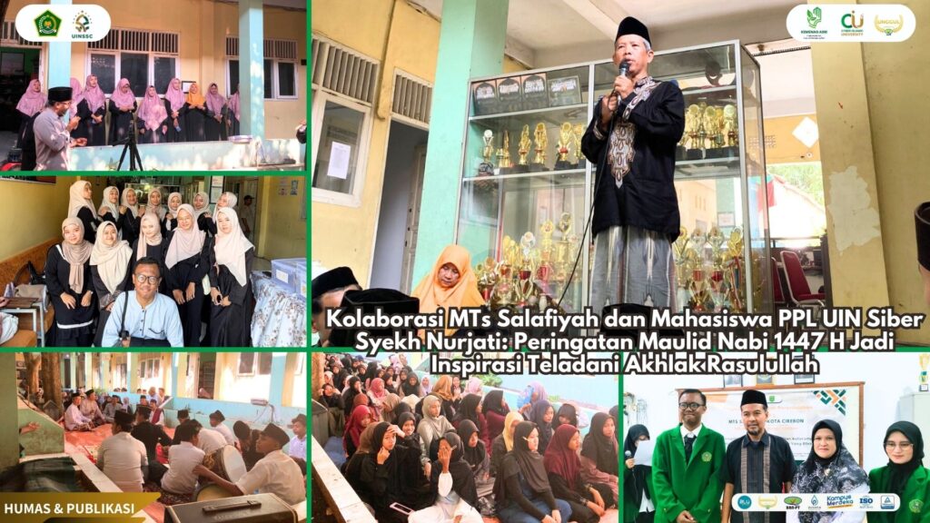 UIN Siber Cirebon – Madrasah Tsanawiyah (MTs) Salafiyah Kota Cirebon menggelar peringatan Maulid Nabi Muhammad SAW 1447 H pada Selasa pagi (23/9), bertempat di halaman madrasah. Acara yang berlangsung pukul 08.00–12.00 WIB ini diikuti oleh seluruh sivitas akademika, mulai dari siswa, guru, karyawan, hingga mahasiswa PLP dari Fakultas Ilmu Tarbiyah dan Keguruan (FITK) UIN Siber Syekh Nurjati Cirebon.