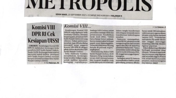 Komisi VIII DPR RI Cek Kesiapan UISSI (Radar Cirebon/20 September 2021) 15 Oktober 2021 arifin Kliping Digital 0 Komisi VIII DPR RI Cek Kesiapan UISSI