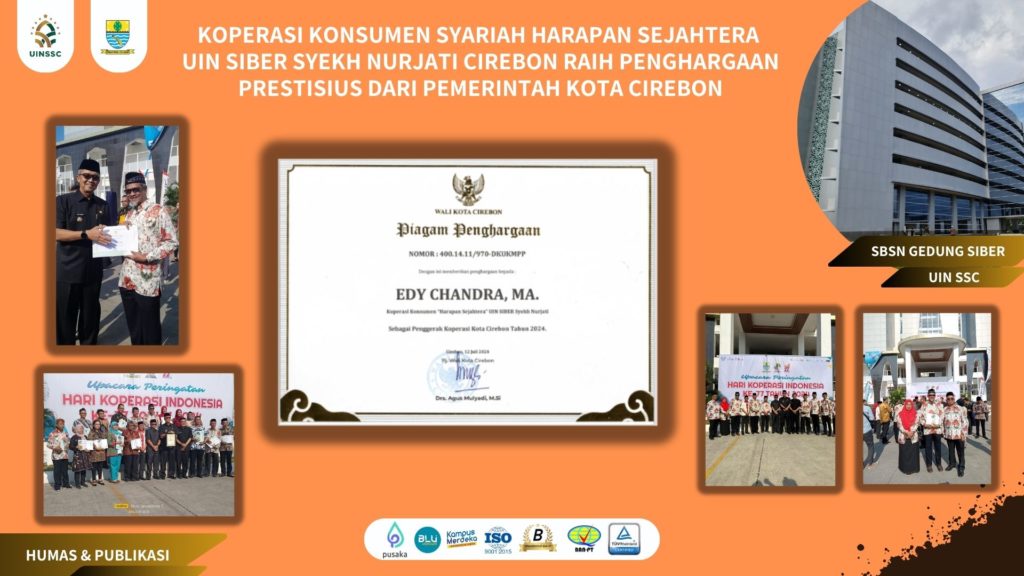 UIN Siber Cirebon – Koperasi Konsumen Syariah Harapan Sejahtera UIN Siber Syekh Nurjati Cirebon kembali meraih penghargaan dari Pemerintah Kota Cirebon atas kinerja dan kiprahnya yang gemilang. Penghargaan ini diberikan dalam rangka peringatan Hari Koperasi Indonesia ke-77 tingkat Kota Cirebon dan merupakan bagian dari rangkaian kegiatan Hari Jadi Kota Cirebon yang ke-597. Senin, (15/07/2024).