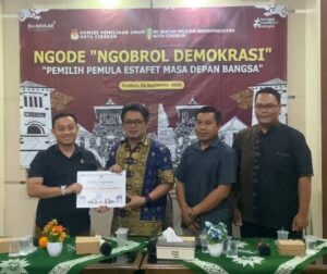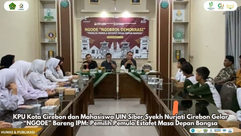 UIN Siber Cirebon – Komisi Pemilihan Umum (KPU) Kota Cirebon bersama mahasiswa UIN Siber Syekh Nurjati Cirebon menyelenggarakan kegiatan Ngobrol Demokrasi (NGODE) bertema “Pemilih Pemula Estafet Masa Depan Bangsa” di Gedung PDM Kota Cirebon, Jumat (26/9). Acara ini menjadi ajang edukasi politik sekaligus ruang dialog kritis bagi generasi muda, khususnya pemilih pemula.