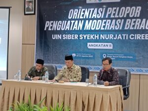 UIN Siber Cirebon (Kuningan) – Rumah Moderasi Beragama Universitas Islam Negeri (UIN) Siber Syekh Nurjati Cirebon kembali menggelar Orientasi Pelopor Penguatan Moderasi Beragama Angkatan II, yang berlangsung selama empat hari, Rabu–Sabtu (20–23/8/2025), di Grage Sangkan Hotel Kabupaten Kuningan. Sebanyak 42 peserta yang terdiri dari tenaga pendidik dan kependidikan antusias mengikuti kegiatan strategis ini sebagai bagian dari komitmen kampus dalam memperkuat nilai-nilai kebangsaan dan keberagaman di lingkungan perguruan tinggi Islam.