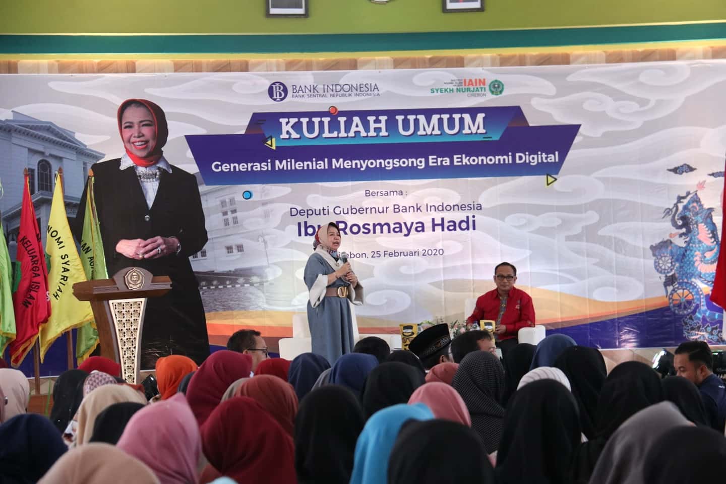 Generasi Baru Indonesia (GenBi) Institut Agama Islam Negeri (IAIN) Syekh Nurjati Cirebon menjadi tuan rumah penyelenggaraan Kuliah Umum GenBi Se-wilayah Ciayumajakuning dengan tema “Generasi Milenial Menyongsong Era Ekonomi Digital” bertempat di gedung pascasarjana lantai 3. Kegiatan tersebut dihadiri H. Satori, S.Pd.I., M.M (Anggota Komisi VI DPRRI), Dr. H. Sumanta Hasyim, M.Ag (Rektor) didampingi unsur pimpinan, Ibu Rosmaya Hadi (Deputi Gubernur Bank Indonesia) berserta tim dan tamu undangan. Selasa (25/20).